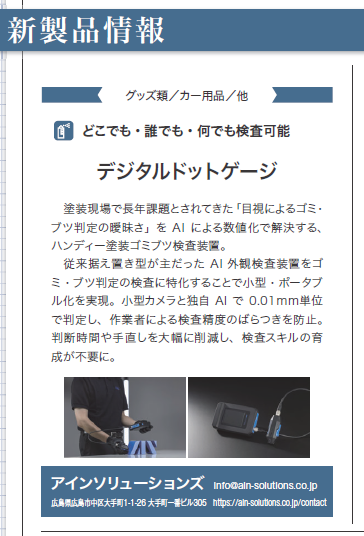 2月5日㈱プロトリオス発行「メンテナンスショップレポート3月号」の新製品紹介記事に掲載されました。